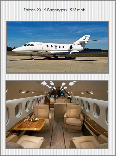 DESAULT FALCON 20 $$$$$ - The Falcon 20 will carry up to nine people traveling at 540 mph, in a very large, spacious cabin. view image